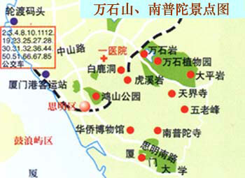南普陀风景游览区位于厦门老城区的东面,包括南普陀寺、五老峰和胡里山炮台等景点。风景妩媚动人,反映宗教文化、闽台文化、侨乡文化和近代史的人文景观非常丰富。 |