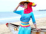 惠东女风情以独特服饰最突出。19世纪的大头髻、接袖衫、宽筒裤、贴背、腰巾、百褶短裙。20世纪前期的黑头篷、缀做衫、银腰链。20世纪中期的“节约”衫、黄斗笠、花头巾。竹帽尖尖,露脐短衫,银织腰带,花布遮脸,头饰斑斓……惠东女堪称生活的艺术家,她们善于在简朴素淡粗犷中勾画出婉丽柔和细腻,展现独有的美感。 有些游客把惠安女当作边陲海疆的少数民族。据一位学问渊博的学者考证,惠安女是古代百越族的后裔,她们头上的蝴蝶型头饰物,类似古百越族的族徽或图腾。这个偏僻的角落还保留着史前时期母系社会的痕迹,惠安女手臂上所戴的银镯和腰间佩带的银链,相传是母系社会解体时女人被男子所锁铐的象征。在民风民俗日益为现代化大潮淹没的今天,惠安女不失为汉民族妇女中一道独特的风景线。 (资料来源:千龙网) |