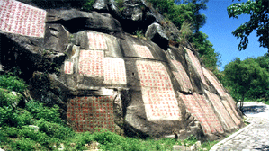 九日山耸立福建晋江金溪北岸,三峰鼎峙,奥衍明秀。西晋太康9年(公元288年),山麓创建延福寺。衣冠南渡后,聚居晋江之中原移民,每逢重九,登山怀乡,因以得名。南朝间,印度高僧拘那罗陀于此翻译《金刚经》,泛海回国。唐时,诗人秦系、名相姜公辅、学士韩??相继栖隐其间,石佛岩、金溪桥、通远王庙诸胜逐一形成。两宋遂为泉南游览及海舶祈风胜地。山中现存摩崖石刻75方,其中13方有关海外交通及祈风石刻,记载太守、南外宗正、提举市舶诸官 |