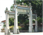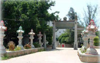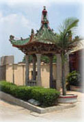 入拱门便是气势雄伟的大寺院,寺前是一片开阔的平地,六株有30年之久的榕树根深叶茂,遮天蔽日。布列讲究的花坛里,四时花卉,草绿花香。
