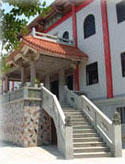 寺院是中西合璧的三层楼阁,钢筋水泥结构。下层为寺的底座,是供斋大厅,可列40余席。二、三楼的两厢有套房四间,铝合金窗户。