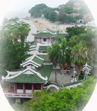招凉亭,面对大海,凉风习习,且亭子造型如折扇,更有招凉之意。