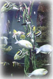 鱼从头顶飘然而过……,潜水员在水下喂鱼表演,群鱼争食,人鱼混为一体的精彩场面,让人赞叹不已。 厦门海底世界另一个独特的设施,那就是高7米直径2.5米的圆柱形鱼池,这个高度相当于近三层楼房,在台阶上可以看表层的鱼类活动,也可以看底层的鱼类活动。大型圆柱鱼缸主要展示我国南中国海五彩缤纷的珊瑚礁鱼类。 |