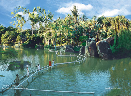 植物园中的万石湖,是1952年10月建成的水库,蓄水15万立方米。围绕万石湖有松杉园、竹林径、棕榈岛、蔷薇园、驯化区、百花厅、兰花圃、新碑林和南洋杉广场等众多专类园区和游览点,汇聚着许多热带、亚热带的珍稀植物品种。诸如市树凤凰木、市花三角 |