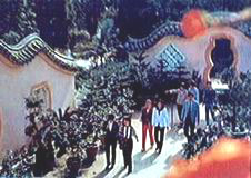 花园饮酒、赏月观花。天上碧空如水,玉露流波、金凤风彩,清辉照人。朱以仁一时高兴,多饮了几杯,醉卧于花园之中。他朦胧中忽见云朵游动,一阵乐声随风飘扬,随即一行仙女手捧鲜花,冉冉降落园中,翩翩起舞,若惊鸿飞雁,如玉树临风,轻歌曼舞美不胜收,听她们唱道: 【返回】 |