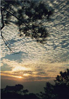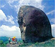 天柱山,在长泰县东南25公里处,海拔933.1米,与朝天岭,双髻山相连结,成为长泰县与龙海市的分界线。每当旭日初照时,或是燃烧的晚霞映红天空之际,天柱便幻出虹色异彩,因而又名“紫玉峰”。在这里,可以东望日出,俯瞰沧海,“一览江山几万重”。游人自城关武安镇沿通往厦门的公路驰车3公里,再转左侧的盘山公路,就到达亭下林场,然后就可以徒步沿石径登山。一路绿树葱茏,浓荫蔽日,鸟语花香,景色明丽。再往上,南望可见象鼻岩,朝北有小道通往慈云岩。昼登天柱,未凌绝顶,而厦门海涛、漳州城廓已尽收眼底。其风爽,其气凉,云雾飘忽,宛若仙境。夜环视,茫茫苍穹,星汉灿烂,数百里遐迩,灯霓交辉,周边世界,万物俱寂,常使人三省。 |