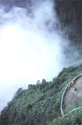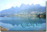 珠帘化雨:灵通岩顶云雾缭绕,飞泉四溅,晶莹的水珠从天作盖的岩石崖巅流溅而落,源源不断,就象丝线串成珍珠所织成的珠帘一般,故称“珠帘化雨”。