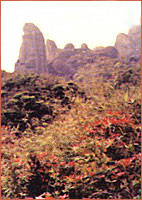 沿山间小径,向天柱峰方向登攀,山路弯弯,两旁古木参天,烟雾迷茫。山麓有一大石洞,名“陈吊洞”,相传宋末元初,福建汉族、畲族人民起义领袖陈吊眼曾屯于此。 |