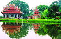 只石象和两只石鼓;殿堂三重庙顶,用琉璃瓦铺盖,中梁与屋檐用瓷片雕塑、剪贴各种神兽造型,色彩斑斓,神态逼真。整座宫宇的石、木、瓷三雕建筑具有很高的艺术欣赏价值。 |