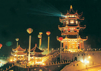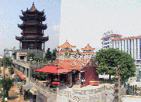 威镇阁是漳州古城重要标志性建筑之一,位于市区东南角战备大桥北端桥头处。 明万历《漳州府志·规制·宫室》卷二记载:“八角楼(即八卦楼、威镇阁),在城东南角,隆庆六年(1572)知府罗青霄建”。清光绪版《漳州府志·古迹》卷四十记载:“威镇阁,亦名八卦楼,在城东南角,明万历六年(注:应为隆庆六年),知府罗青霄以巽隅洼甚,乃撤城上旧楼建层阁,额曰‘威镇’,与芝山威镇亭对峙,势若华表撑空,郡治增胜。八窗玲珑,取象八卦,其规制皆出同知罗拱辰。时有联云:‘五 |